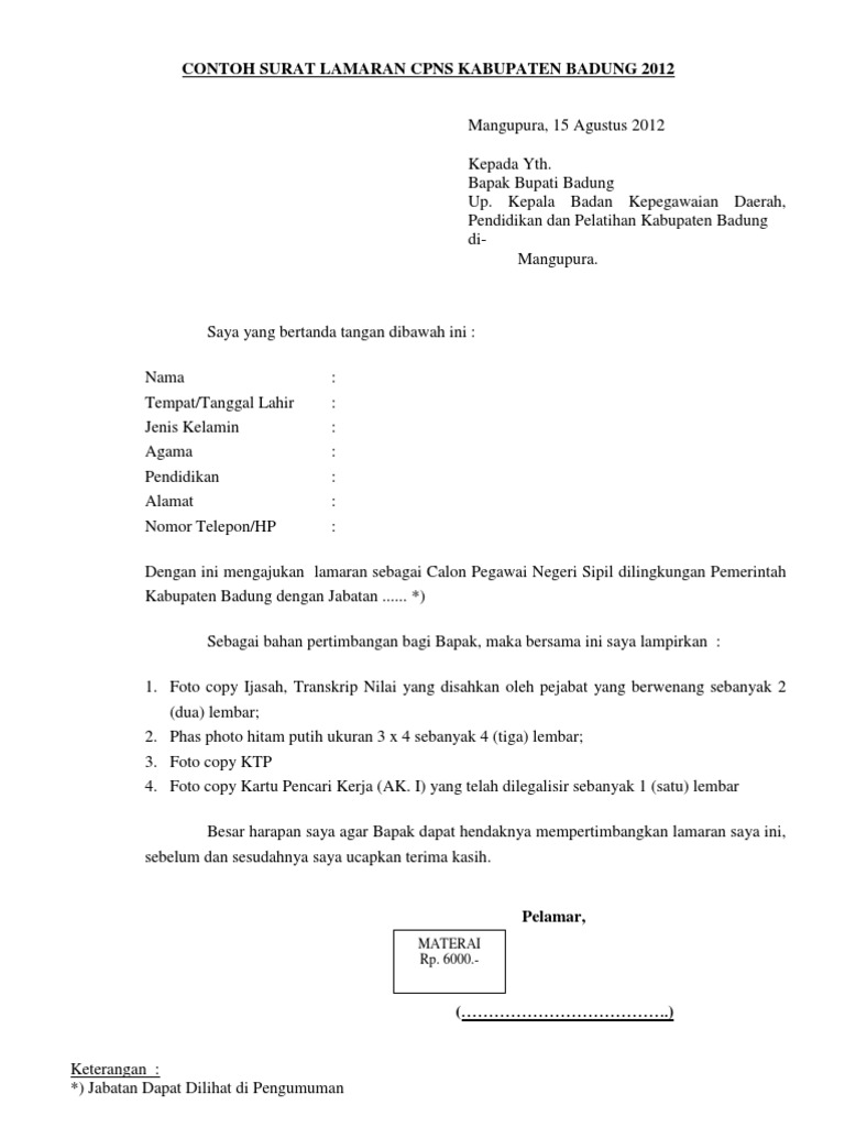 Contoh surat lamaran kerja instansi pemerintah buat anda yang membutuhkan v.