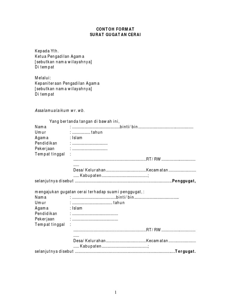 Surat gugatan cerai adalah surat yag dibuat guna untuk menggugat suami atau istri yang dialamatkan kepada pengadilan agama. Di antaranya dari contoh surat kuasacerai talak, contoh surat talak tulisan tangan, contoh permohonan cerai talak oleh advokat, maupun contoh surat cerai secara. 5 contoh dan cara membuat surat cerai sendiri dengan mudah. Surat pernyataan cerai doc atau download contoh surat tentu atensi dari anda sangat kami apresiasi. Bila bermaksud untuk bercerai maka kita wajib untuk membuat surat gugutan cerai yang ditujukan kepada pengadilan agama.